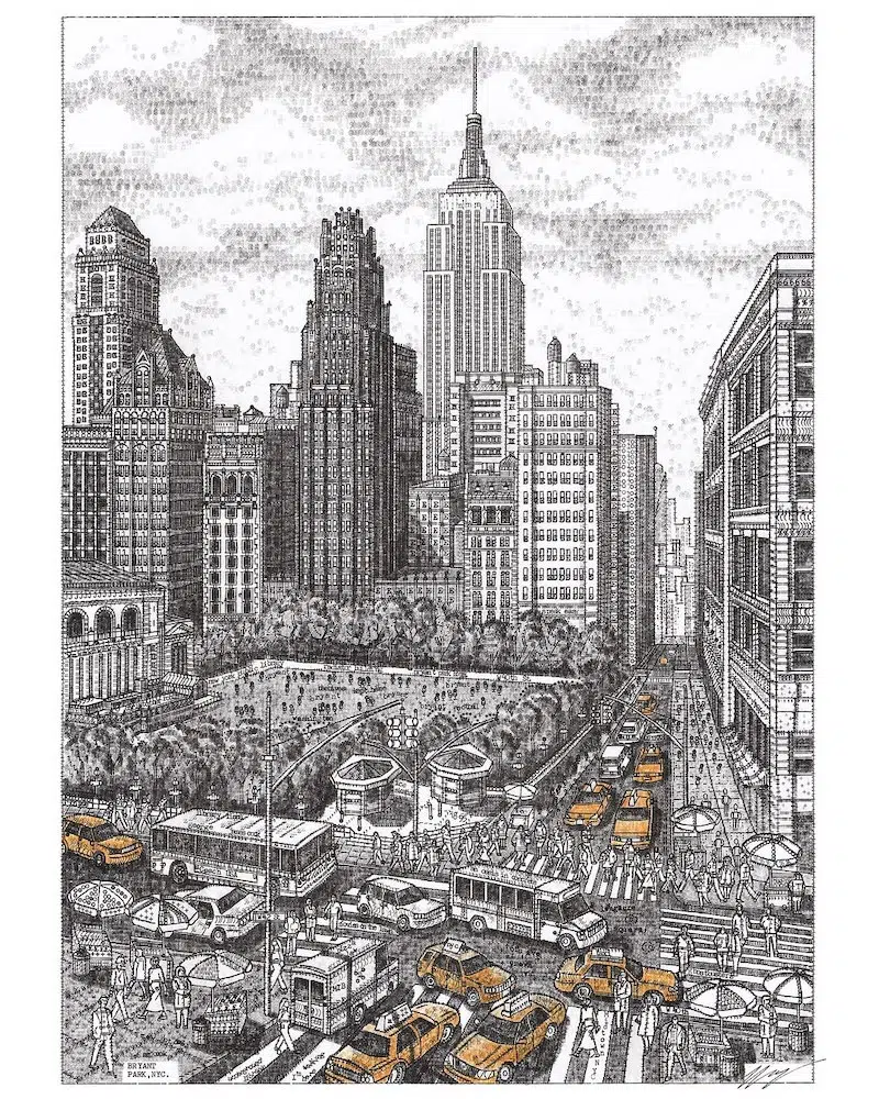 , and you'll see the weather predictions for the next 3 days in Lyon 🎉 I love this kind of projects - Murder she draw – James Cook types illustrations with his typewriter, and I really like the result! You can look at his work on Instagram, or read this interview to know more about it. I'm not the biggest fan of his portraits, but the urban landscapes are great: